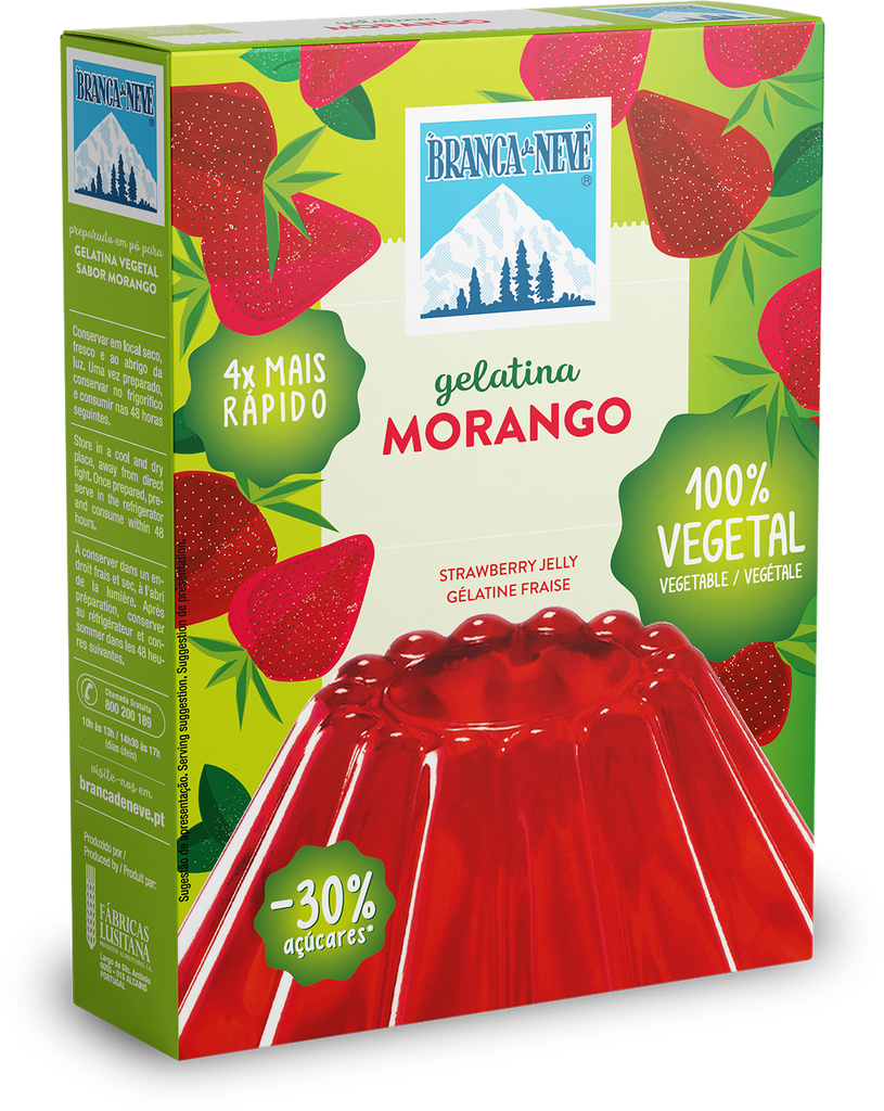 De origem vegetal, a Gelatina de Morango Branca de Neve prepara-se em 5 minutos. Todo o sabor e aroma do morango numa gelatina fresca e deliciosa.